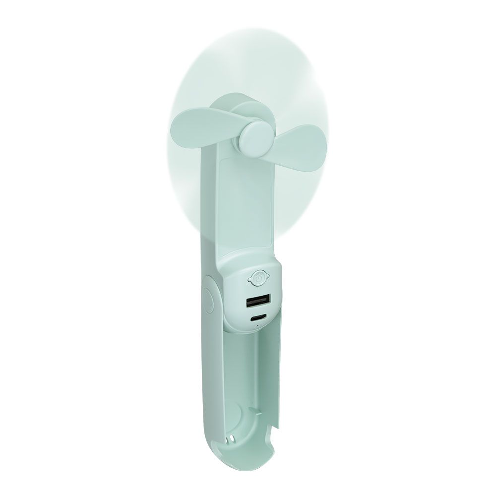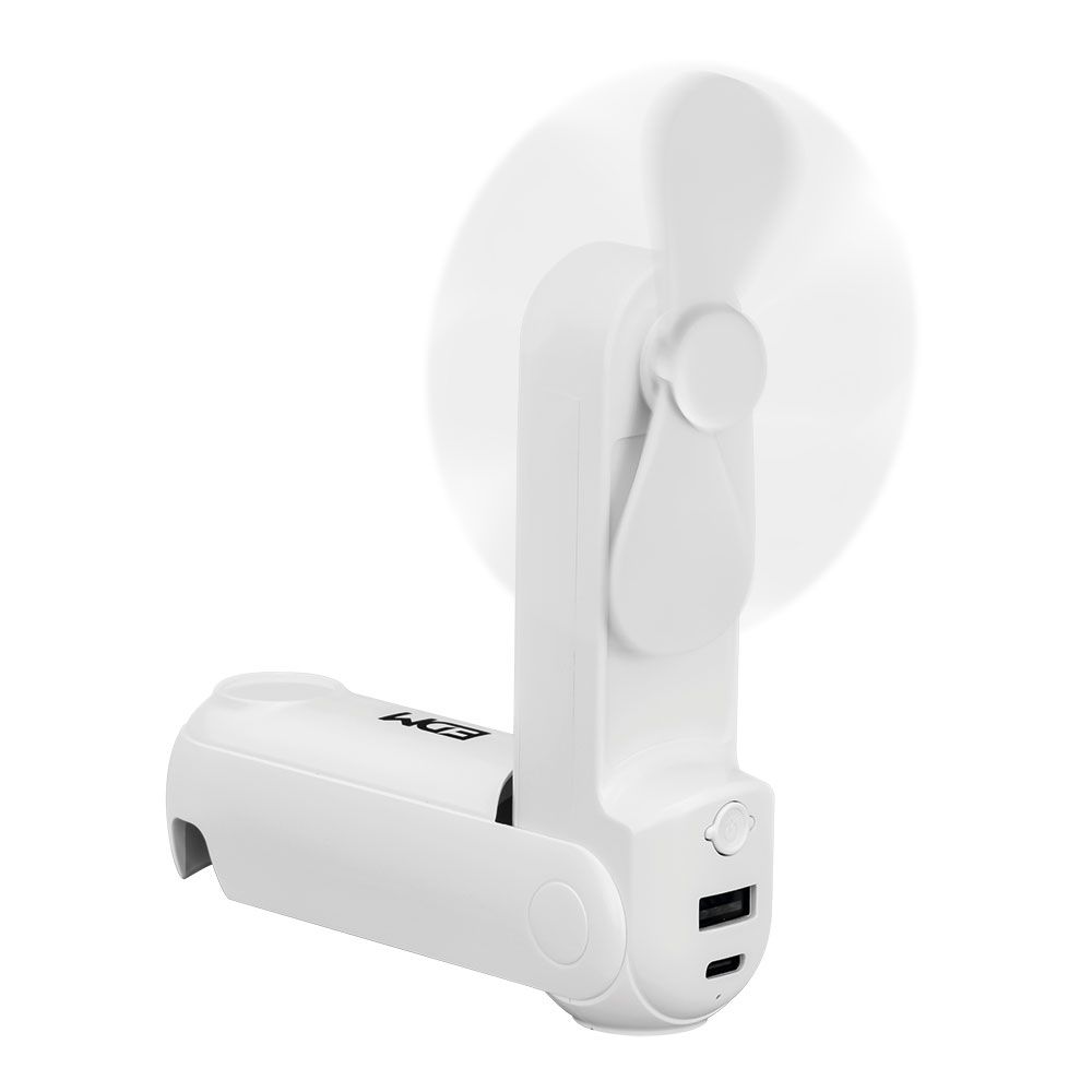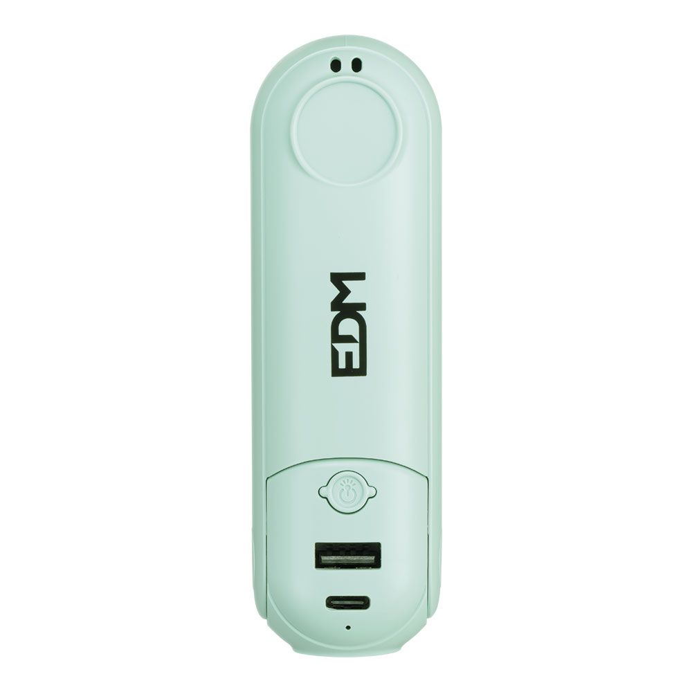VENTILADOR DE MANO PLEGABLE CON LINTERNA, POWERBANK, 3 NIVELES, RECARGABLE POR PUERTO USB-C DE 30 cm (INCLUIDO), BATERÍA 1.200 mAh. FUNCIONA COMO SOPORTE DE SMARTPHONE CON ESPEJO INTEGRADO. TIEMPO DE CARGA 3 h, 7 h MÁXIMO DE AUTONOMÍA. DIMENSIONES ASPA Ø9,7 cm / VENTILADOR ABIERTO 3,7 x 20 cm - CERRADO 3,7 x 11,9 cm