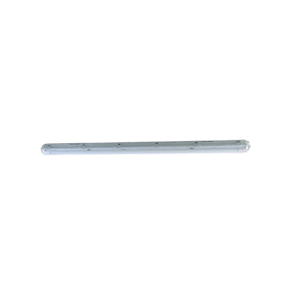 PANTALLA ELECTRIFICADA ESTANCA PARA UN TUBO LED DE 150 cm, NO INCLUIDO - BLANCA - PORTALÁMPARAS G13 - 220 - 240 V ~50/60 Hz - IP65, APTA PARA USO EXTERIOR Y AMBIENTES HÚMEDOS - TEMPERATURA USO -20°/40°C - CIERRE CON 4 CLIPS DE PLÁSTICO, OPCIONALES METÁLICOS, CUERPO ABS, DIFUSOR PC - ENTRADA CABLE CON PRENSAESTOPAS, ELECTRIFICADA A UN LADO - INCLUYE TRONILLERÍA - 1562 x 85 x 94 mm