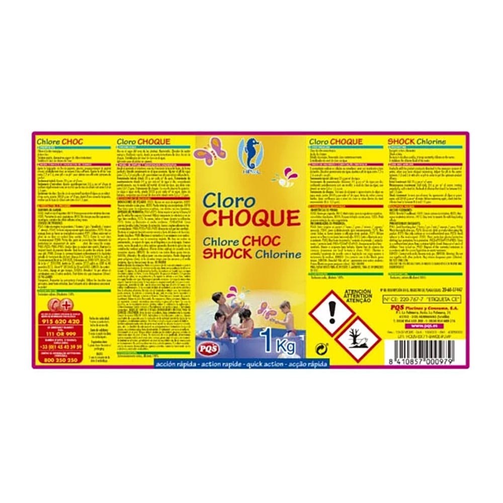 CLORO CHOQUE GRANULADO, BOTE 1 kg. USO EN EL AGUA DEL VASO DE LAS PISCINAS, BACTERICIDA, CLORADOR DE ACCIÓN ENÉRGICA. DISOLUCIÓN RÁPIDA, DANDO UN APORTE INSTANTÁNEO DE CLORO. PARA EL TRATAMIENTO DE ARRANQUE O CHOQUE CONTRA ALGAS VERDES. CONSULTAR LA ETIQUETA DEL PRODUCTO PARA MÁS INFORMACIÓN SOBRE DOSIS INDICADAS