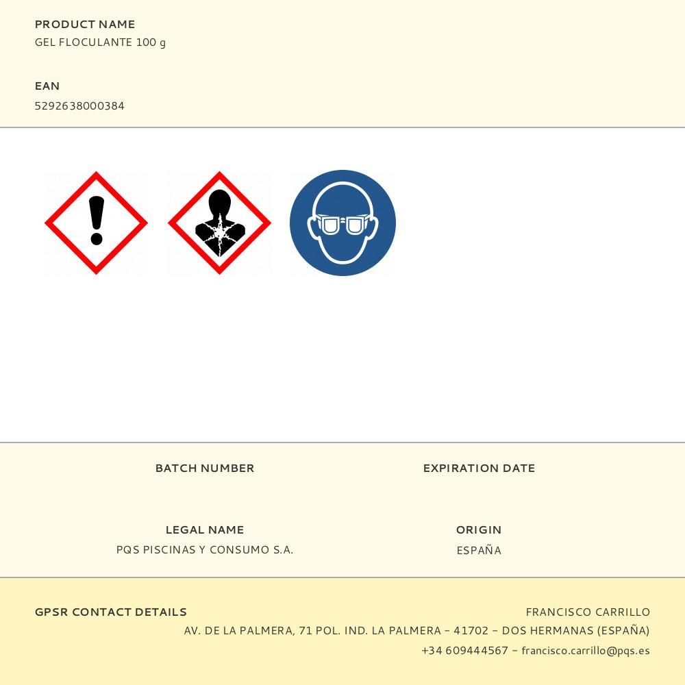 FLOCULANTE GEL 1 L. FABRICADO CON COMPONENTES NATURALES. CLARIFICA EL AGUA DE MANERA RÁPIDA Y SENCILLA, MEJORANDO LA TRANSPARENCIA Y LIMPIEZA DE LA PISCINA, Y LA CALIDAD DEL SISTEMA DE FILTRACIÓN. AYUDA A ELIMINAR LA MATERIA ORGÁNICA DEL AGUA, ASÍ COMO METALES Y RESTOS DE ACEITES SOLARES. COMPATIBLE CON OTROS TRATAMIENTOS DESINFECTANTES. PUEDE TRATAR UNA PISCINA DE HASTA 100 m³ DURANTE UN MES. SE COLOCA EN EL CESTILLO DE LA BOMBA DE FILTRACIÓN (NO EN EL SKIMMER). PRESENTADO EN EXPOSITOR DE 12 uds