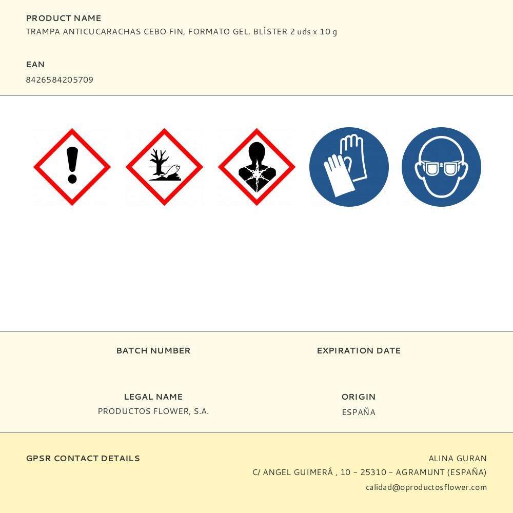 TRAMPA PORTACEBO ANTICUCARACHAS, FORMATO GEL, FIN, BLÍSTER 2 uds x 4 g