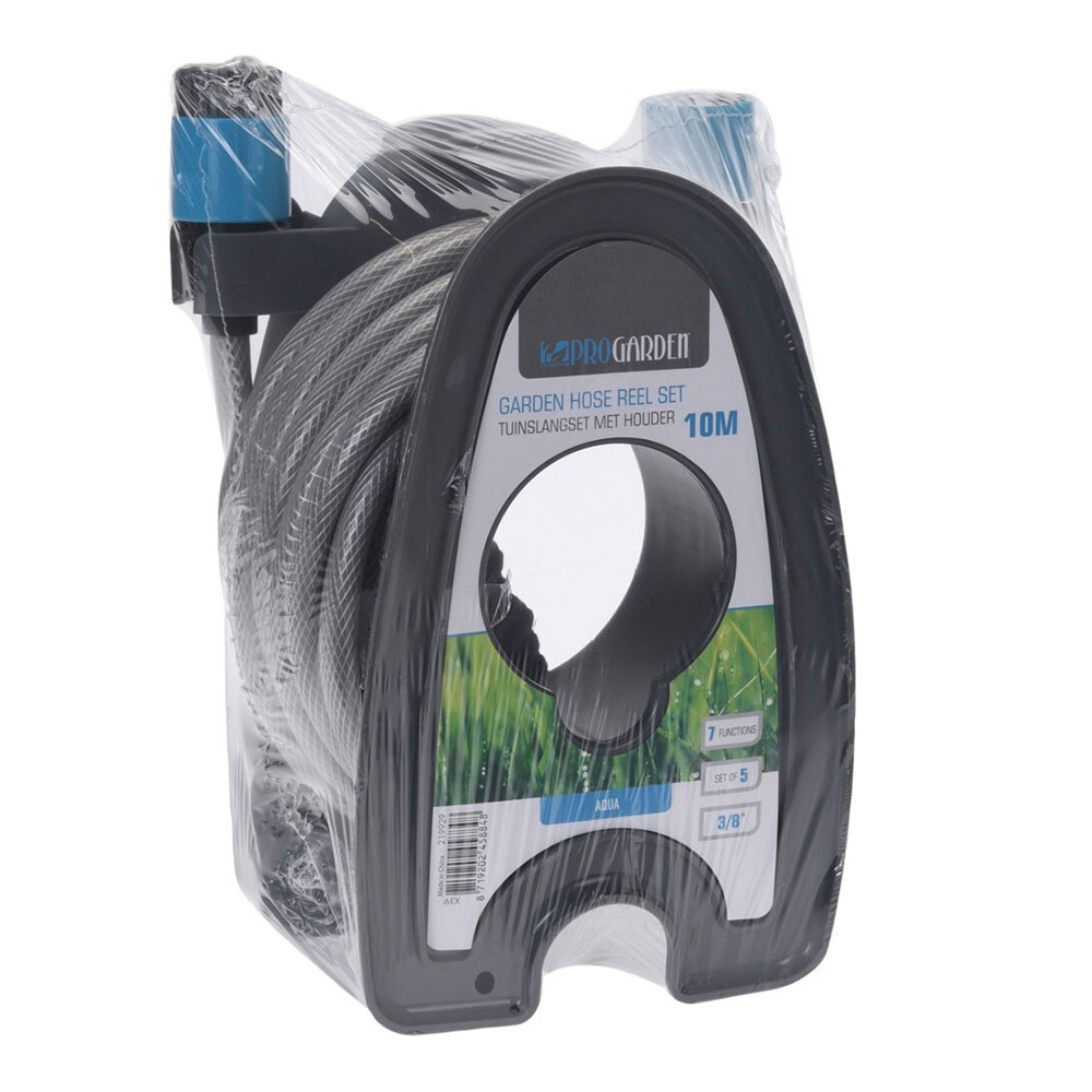 MANGUERA DE JARDÍN 3/8 pulg. 10 m CON PISTOLA Y SOPORTE DE PARED - 18,5 x 14 x 24,5 cm