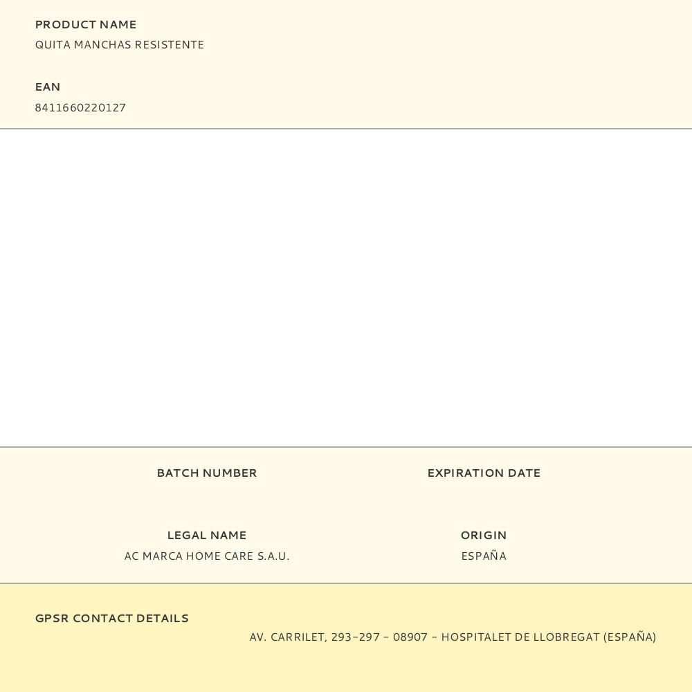 QUITA MANCHAS RESISTENTE, 150 ml