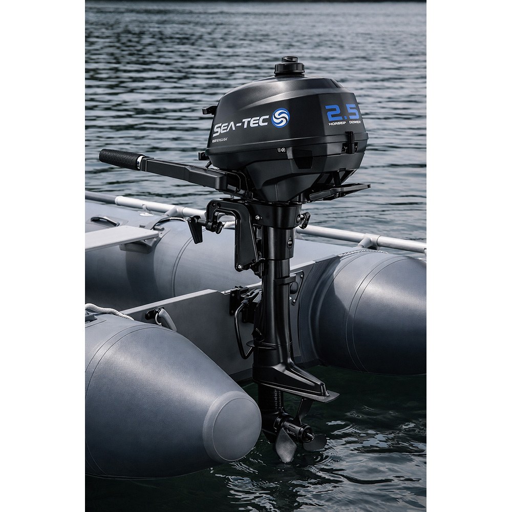 MOTOR FUERABORDA SEATEC 25, 4 TIEMPOS. CILINDRADA: 72 cc. POTENCIA: 2,5 HP. RANGO DE FUNCIONAMIENTO: 4500-5500 rpm. CAPACIDAD DEL TANQUE: 0,9 LITROS. COMBUSTIBLE RECOMENDADO: GASOLINA SIN PLOMO. MOTOR SILENCIOSO DE BAJO CONSUMO, IDEAL PARA EMBARCACIONES AUXILIARES Y PEQUEÑOS BOTES