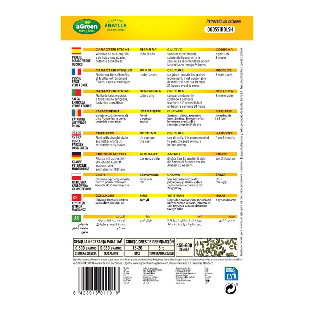 SOBRE CON SEMILLAS DE PEREJIL RIZADO VERDE OSCURO